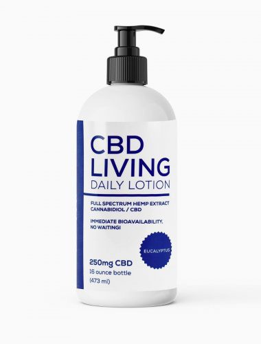 CBD Living Lotion comes in a 16oz bottle and contains 250mg of nan0-CBD for maximum absorption.